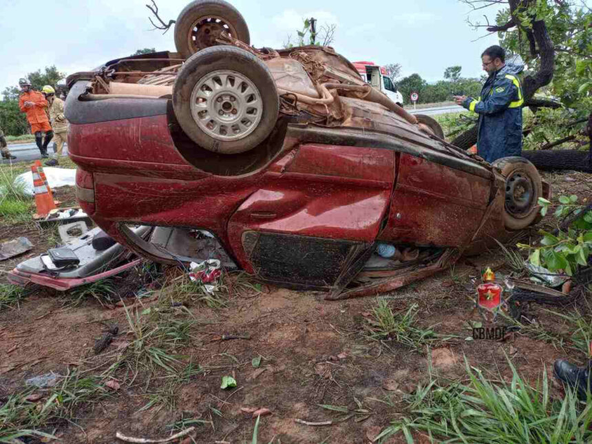Segundo as informações preliminares do Corpo de Bombeiros do DF, o sinistro de trânsito ocorreu por voltas das 08h, na altura do viaduto de Planaltina, na BR-020. O carro é um Fiat Palio Weekend vermelho. Uma testemunha relatou que no momento do acidente chovia bastante.
