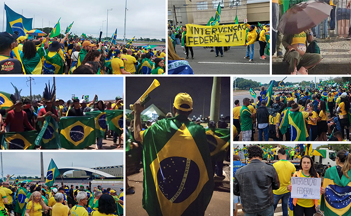 Participantes do movimento não aceitam o resultado da Eleição 2022, que deu a vitória ao petista Luiz Inácio Lula da Silva. Eles alegam que houve fraude nas urnas e, por isso, reivindicam: intervenção federal, não à censura, respeito à Constituição e não aos corruptos no poder. E pedem a ajuda das Forças Armadas para “manter o país em ordem”.