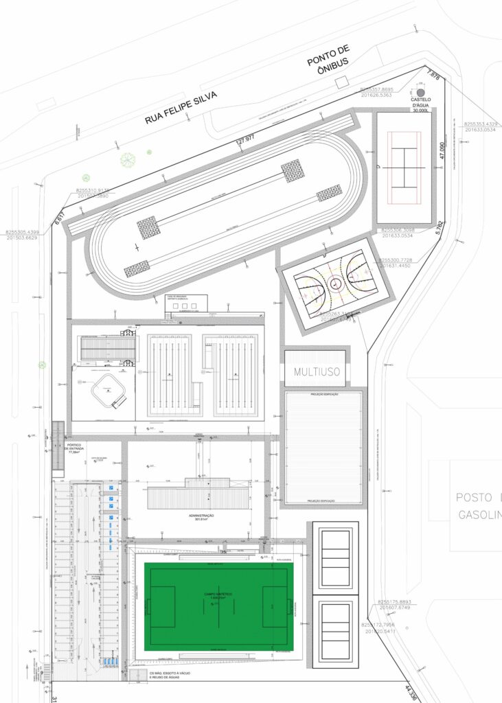 A primeira etapa do projeto contempla administração, banheiros, campo de futebol, calçadas, pórtico de entrada e estacionamento. A construção está orçada em R$ 2.715.040 e será bancada com recurso de emenda parlamentar de 2019. “Um recurso que praticamente ia ser perdido, mas que unimos esforços e conseguimos avançar. Foram muitos processos burocráticos para chegarmos nesta etapa”, explica a secretária.