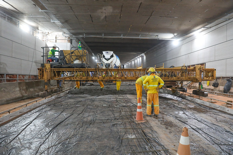 Além disso, o recuo de segurança do túnel norte também precisa ser concretado. A área, destinada a qualquer situação de emergência, tem 40 m de comprimento por 3 m de largura. “O espaço pode ser usado para uma troca de pneu ou por uma ambulância que precise atender alguém dentro da passagem, por exemplo”, aponta o engenheiro de produção Renes Cândido. “Cada lado da passagem subterrânea tem a sua”.
