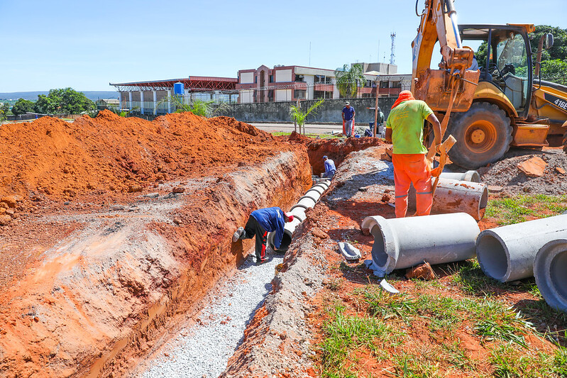 Os serviços começaram pela implantação da infraestrutura de drenagem pluvial, com readequação e instalação de PV (poços de visita), tubos de acesso ao serviço subterrâneo. São 1.617,50 metros de rede.