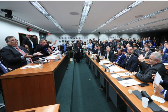 Interrompido novamente, Dino acusou dois deputados sentados na primeira fila de o terem agredido verbalmente. Foi quando um grande tumulto se formou e não pôde ser controlado pelo presidente do colegiado, que optou por encerrar a reunião.