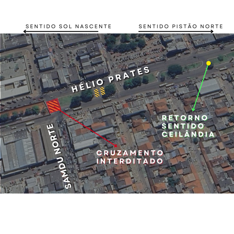 Desta forma, como rota alternativa, os motoristas que trafegam na Samdu em direção a Ceilândia devem utilizar retorno, localizado a 240 metros do cruzamento, na frente da Drogasil.