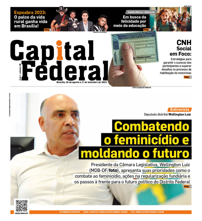 Versão impressaCapital Federal 38 Por Redação Publicado 25 de agosto de 2023 0 Min Leitura Compartilhe 0 Min Leitura Você também pode gostar Juventude ganha protagonismo na celebração dos 66 anos de Brasília Mais de mil acidentes foram registrados nas rodovias durante o feriado de Tiradentes Corpo de Bombeiros alerta para riscos de saltos da Ponte JK Neoenergia Brasília retoma atendimento itinerante e leva serviços essenciais diretamente às comunidades do DF TAGS Capital Federal 38, Jornal capital federal, versao-impressa Compartilhe esse Artigo Facebook Twitter Whatsapp Whatsapp Telegram Email Copy Link Print Notícia Anterior Senado aprova MP que aumenta salário mínimo e amplia isenção do IR Próxima Notícia Expoabra 2023: o espetáculo da vida rural e entretenimento de excelência Deixe sua opnião Deixe sua opnião Deixe um comentário Cancelar respostaO seu endereço de e-mail não será publicado. Campos obrigatórios são marcados com *Comentário *Nome * E-mail * Site Salvar meus dados neste navegador para a próxima vez que eu comentar. - Patrocinado - - Patrocinado -Últimas Notícias Juventude ganha protagonismo na celebração dos 66 anos de Brasília Mais de mil acidentes foram registrados nas rodovias durante o feriado de Tiradentes Corpo de Bombeiros alerta para riscos de saltos da Ponte JK Neoenergia Brasília retoma atendimento itinerante e leva serviços essenciais diretamente às comunidades do DF Costelão solidário mobiliza comunidade da Colônia Agrícola Samambaia em Vicente Pires - Patocinado - - Patrocinado -