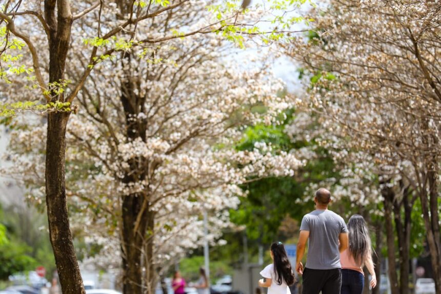 “Às vezes, o mesmo ipê-branco pode apresentar, em poucos dias, até três florações que são rápidas. É comum isso acontecer, apesar de a floração não ser tão expressiva quanto a primeira. Já os ipês-rosas, cuja floração é um pouco mais discreta, estão começando a florir agora. O rosa costuma durar um pouco mais, cerca de sete dias, e também não é tão expressivo. Normalmente tem flor e um pouco de folha, por exemplo. Mas é possível avistá-los”, afirmou a chefe da Divisão de Agronomia do Departamento de Parques e Jardins (DPJ) da Companhia Urbanizadora da Nova Capital (Novacap), Janaina Gonzáles.