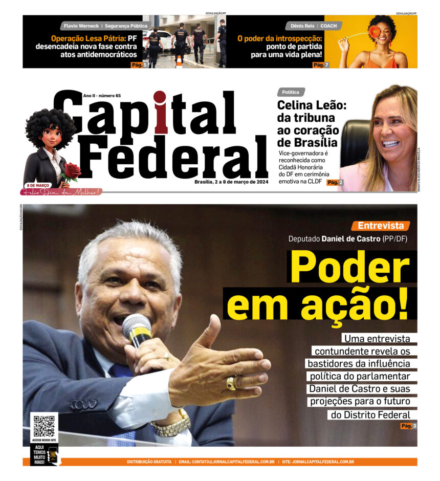 Versão impressaCapital Federal 65 Por Redação Publicado 1 de março de 2024 0 Min Leitura Compartilhe 0 Min Leitura Capital Federal 65 Você também pode gostar Mais de mil acidentes foram registrados nas rodovias durante o feriado de Tiradentes Corpo de Bombeiros alerta para riscos de saltos da Ponte JK Neoenergia Brasília retoma atendimento itinerante e leva serviços essenciais diretamente às comunidades do DF Costelão solidário mobiliza comunidade da Colônia Agrícola Samambaia em Vicente Pires TAGS capital federal 65, Jornal capital federal, versao-impressa Compartilhe esse Artigo Facebook Twitter Whatsapp Whatsapp Telegram Email Copy Link Print Notícia Anterior Charge – Fim das transações via DOC e TEC Próxima Notícia Deputado Daniel de Castro (PP/DF) – Força legislativa e destino político em debate Deixe sua opnião Deixe sua opnião Deixe um comentário Cancelar respostaO seu endereço de e-mail não será publicado. Campos obrigatórios são marcados com *Comentário *Nome * E-mail * Site Salvar meus dados neste navegador para a próxima vez que eu comentar. - Patrocinado - - Patrocinado -Últimas Notícias Mais de mil acidentes foram registrados nas rodovias durante o feriado de Tiradentes Corpo de Bombeiros alerta para riscos de saltos da Ponte JK Neoenergia Brasília retoma atendimento itinerante e leva serviços essenciais diretamente às comunidades do DF Costelão solidário mobiliza comunidade da Colônia Agrícola Samambaia em Vicente Pires GDF suspende mudança no cálculo da remuneração de professores temporários - Patocinado - - Patrocinado -