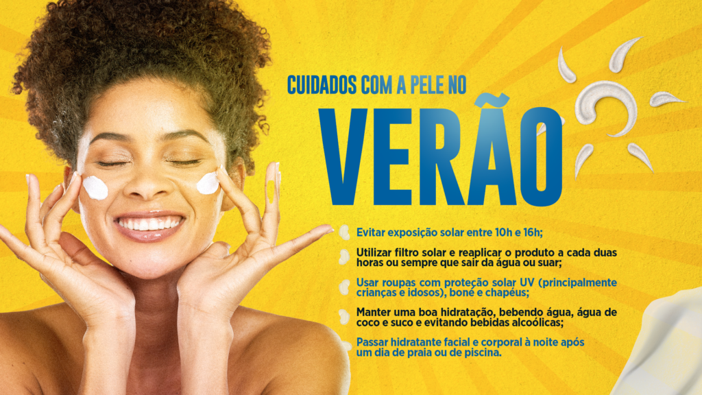 A desidratação da pele devido à exposição excessiva ao sol pode resultar em queimadura e insolação, ocasionando sintomas como náuseas, vômitos, diarreias e até arritmias. “É preciso aumentar a ingestão hídrica e não se expor novamente ao sol”, acrescenta. Em caso da apresentação de qualquer um desses sinais, a pessoa deve procurar a unidade básica de saúde (UBS) mais próxima.
