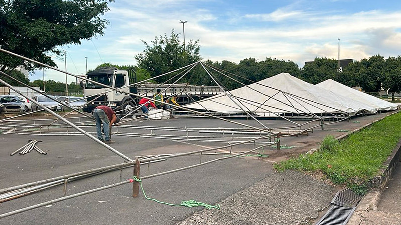 “A nossa equipe da Saúde está acompanhando toda a montagem da estrutura, porque o governo quer que as tendas estejam disponíveis para a população o mais rápido possível”, afirma o subsecretário de Infraestrutura na Saúde da SES-DF, Leonídio Neto.