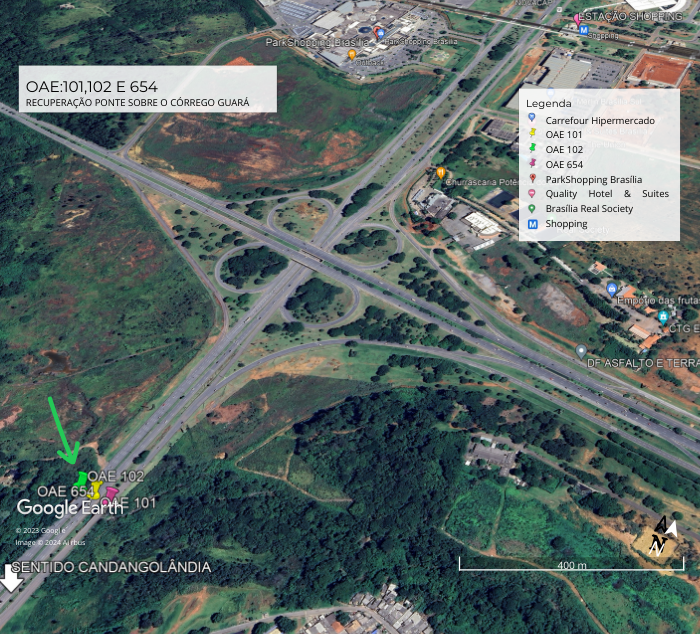 Após a conclusão desse serviço, será dado início à recuperação da ponte, que fica no lado oposto, no sentido Gama–ParkShopping. Serão investidos cerca de R$ 1,2 milhão nas obras de reforma e reforço estrutural dessas obras de arte especiais.
