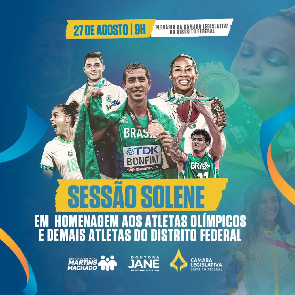 Atletas olímpicos e demais atletas do Distrito Federal serão homenageados em sessão solene, no Plenário da Câmara Legislativa do Distrito Federal, na terça-feira (27), a partir das 9h. Entre os convidados já confirmados estão os medalhistas olímpicos Caio Bonfim (Prata na Marcha Atlética 20km) e Ketleyn Quadros (Bronze por equipes mistas de Judô).