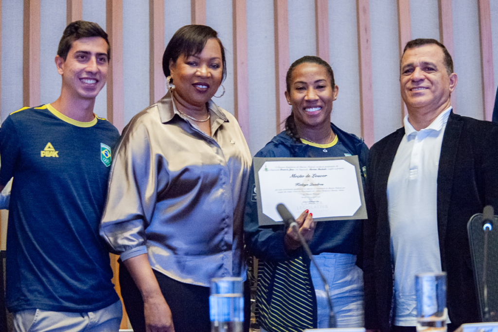 Natural de Ceilândia, a medalhista olímpica de judô na categoria meio-médio Ketleyn Quadros relembrou seu histórico de dedicação e disciplina. Ela narrou as dificuldades enfrentadas por aqueles que se dedicam ao esporte e classificou como cruciais para a vida do esportista os programas públicos de incentivo, como o Bolsa Atleta. “Eu tenho muito orgulho de ter pessoas que acreditaram desde o princípio em mim. Tenho orgulho do DF, que foi o primeiro lugar a ter o Bolsa Atleta, programa que me beneficiou. Isso nos permite sonhar viver uma vida como atleta”, declarou a medalha de bronze.