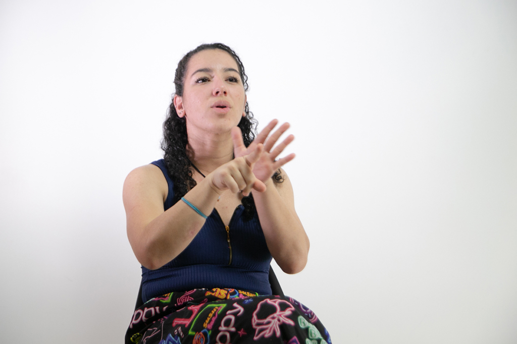 “Fui perdendo a audição gradativamente. Eu já tinha aprendido a falar e tinha sido alfabetizada, mas quando entrei na faculdade, percebi o tanto que a falta de acessibilidade no cinema nacional me impactava. Eu não conseguia assistir a muitos filmes brasileiros por falta de legenda e acessibilidade”, conta. “Não só isso: eu não conseguia participar muito das produções porque elas não eram pensadas para pessoas como eu.”