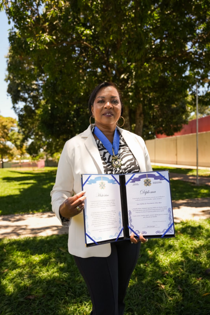 A condecoração foi entregue pelo secretário de Segurança Pública, Sandro Avelar, para a distrital, que é delegada de carreira da Polícia Civil do Distrito Federal.