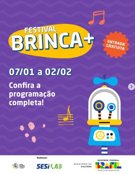 O SESI Lab promete um janeiro e fevereiro repletos de atividades criativas e educativas com o Festival Brinca+. O evento começa nesta terça-feira (7) e vai até o dia 2 de fevereiro, trazendo uma programação diversificada e gratuita para o público. Shows, teatro, cinema e oficinas conduzidas por artistas, educadores, cientistas e designers estão na agenda.