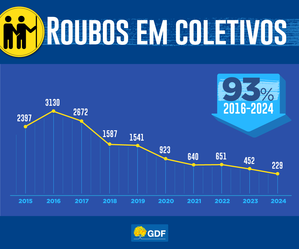 “A redução expressiva reflete o impacto de um planejamento estratégico fundamentado em tecnologia e inteligência. Monitoramos as regiões de maior incidência criminal e direcionamos nossos recursos de forma precisa, garantindo uma atuação mais eficiente das forças de segurança. Esses resultados mostram que estamos no caminho certo para oferecer mais segurança e tranquilidade aos cidadãos que utilizam o transporte público no Distrito Federal”, declara o secretário de Segurança Pública, Sandro Avelar.