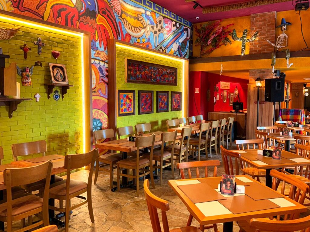 A decoração vibrante, os objetos típicos e a música envolvente criam a sensação de estar em um verdadeiro restaurante mexicano. Cada detalhe leva o cliente direto para uma noite em Guadalajara ou na Cidade do México.