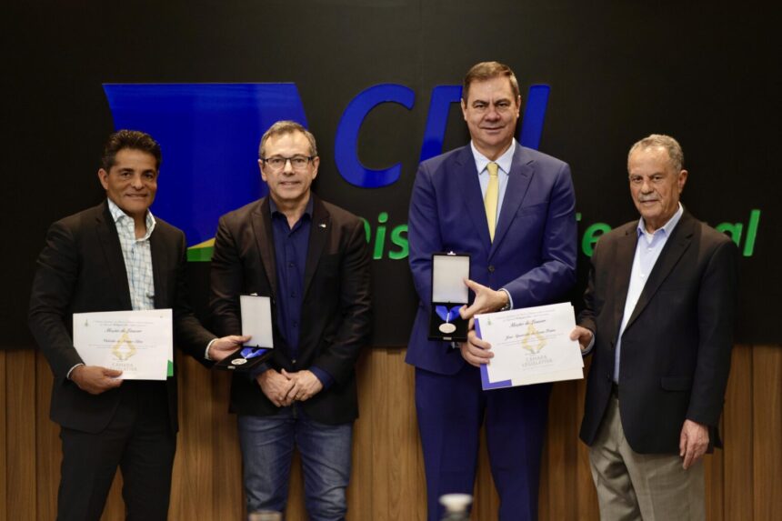 Em uma cerimônia marcada por gratidão e reconhecimento, a Câmara de Dirigentes Lojistas do Distrito Federal (CDL-DF) homenageou o presidente do Sistema Fecomércio-DF, José Aparecido Freire, e o diretor regional do Sesc-DF, Valcides de Araújo. A entrega das medalhas e diplomas aconteceu na sede da entidade, conduzida pelo presidente da CDL, Eduardo Pereira Neto.