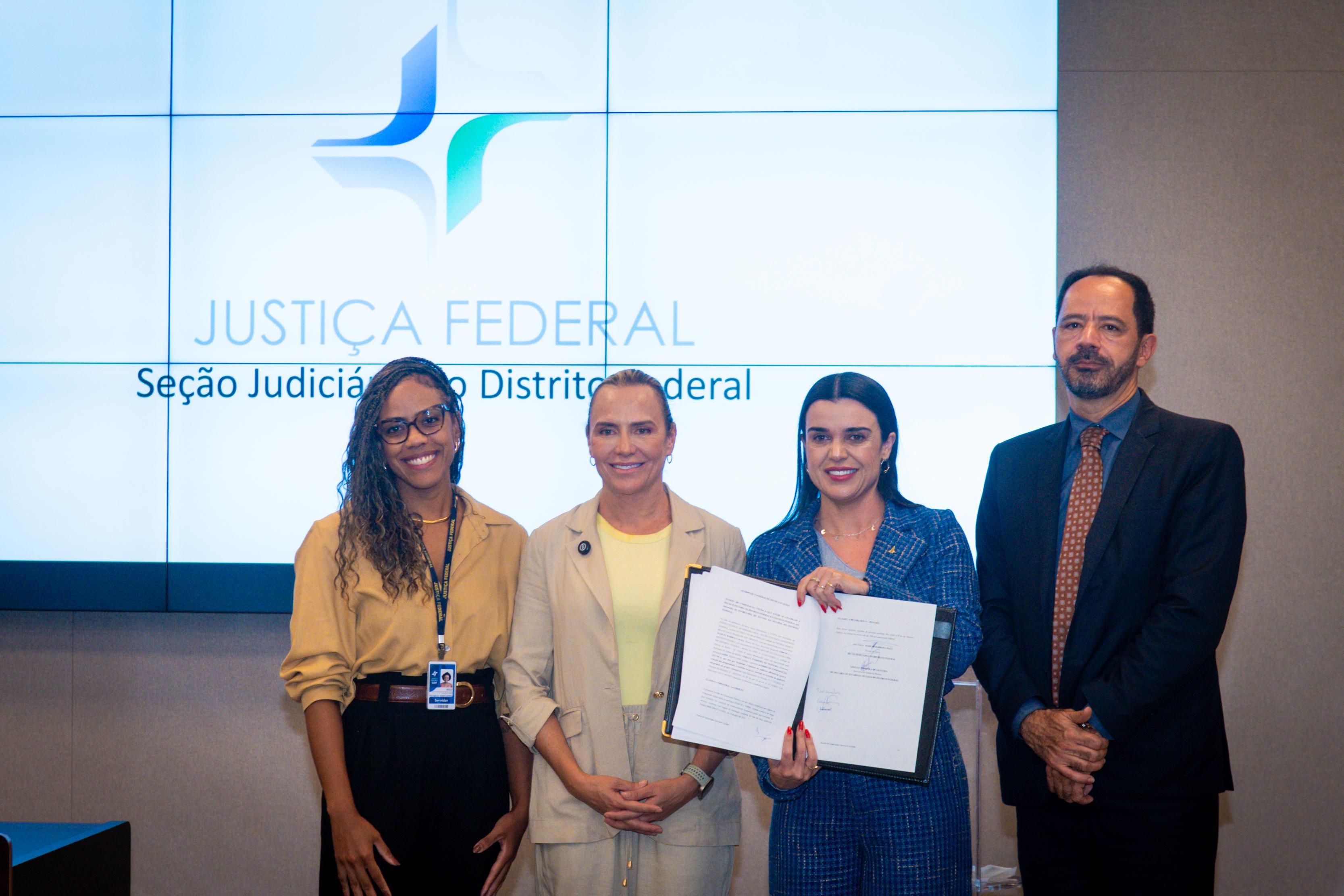 Com o objetivo de promover a inserção de mulheres em vulnerabilidade econômica-social no mercado de trabalho, a Secretaria da Mulher (SMDF) assinou o Acordo de Cooperação Técnica (ACT) com a Justiça Federal de Primeiro Grau – Seção Judiciária do DF (SJDF/JF) nesta quarta-feira (3). A cerimônia para assinatura contou com a participação da vice-governadora, Celina Leão, que destacou a importância do fortalecimento de políticas públicas voltadas para a promoção da autonomia feminina.