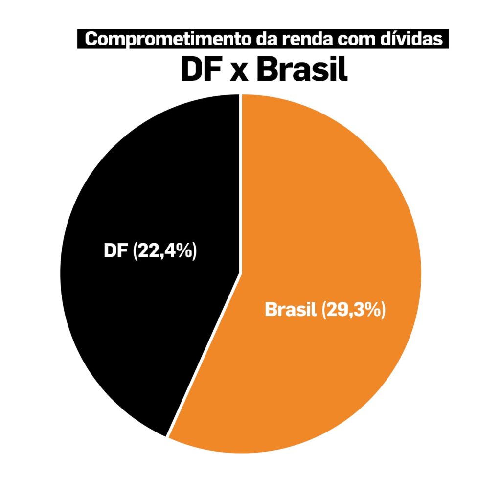Apesar do cenário, o DF apresenta índices melhores que a média nacional: o endividamento local (73%) está 5,8 pontos abaixo do brasileiro (78,8%). No comprometimento da renda, o DF também se destaca, com 22,4% contra 29,3% no país. Já a inadimplência, no entanto, é um ponto de atenção: desde setembro de 2024, o índice local se mantém acima de 40% e hoje está 12,3 pontos acima da média nacional.