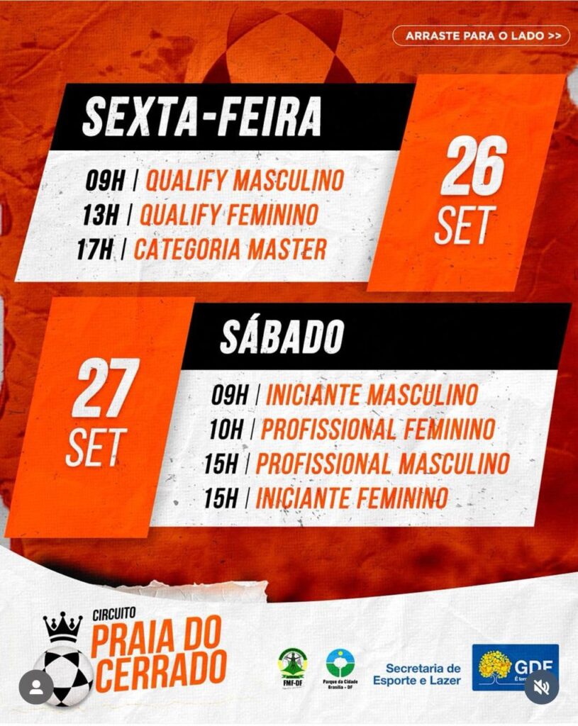 Realizado na Ilha do Futevôlei, no Parque da Cidade Dona Sarah Kubitschek, o torneio reunirá mais de 400 atletas em 11 categorias, incluindo: Masculino e Feminino, Profissional, Série B, Série C, Iniciantes, Misto, Master +40 e o inspirador Desafio Superação, com atletas PCD/amputados.