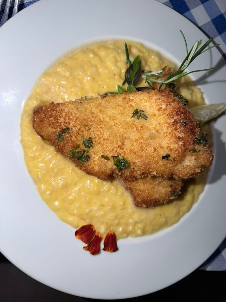 A experiência começa com um cardápio executivo servido nas quartas e sextas. Por R$ 89,90, o cliente recebe entrada, prato principal e sobremesa. Uma mini cestinha de pães com manteiguinha abre caminho para opções como o frango grelhado com crosta de parmesão, acompanhado de risoto de limão e redução de laranja com mel. Para a sobremesa, mousse de chocolate ou brownie encerram a refeição de forma impecável.