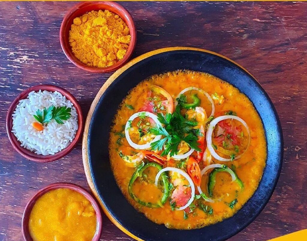 O carro-chefe do cardápio é a moqueca de camarão, o prato mais pedido pelos visitantes. Preparada com tempero marcante e fiel à tradição baiana, ela divide espaço com outras receitas clássicas à base de peixes e frutos do mar. Para quem prefere sabores da terra, a carne de sol com queijo coalho ou com fritas também ganha destaque, acompanhada do elogiado purê de banana-da-terra, que conquista pela textura e equilíbrio.