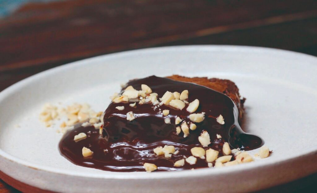 Para a sobremesa, o cliente pode escolher entre brownie de chocolate servido quente ou panna cotta de frutas amarelas, com calda de manga e maracujá finalizada com hortelã.
