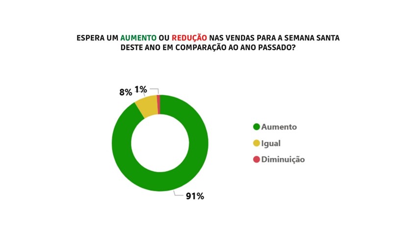 Para o comércio da Semana Santa, 10% dos empresários contrataram ou pretendem contratar funcionários temporários. Desse grupo, 67% indicam a admissão de um a dois colaboradores. Além disso, 74% planejam adotar estratégias de vendas, com destaque para os descontos.