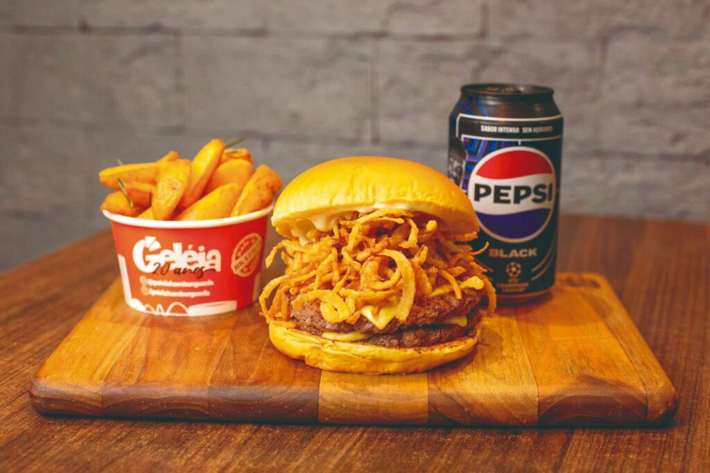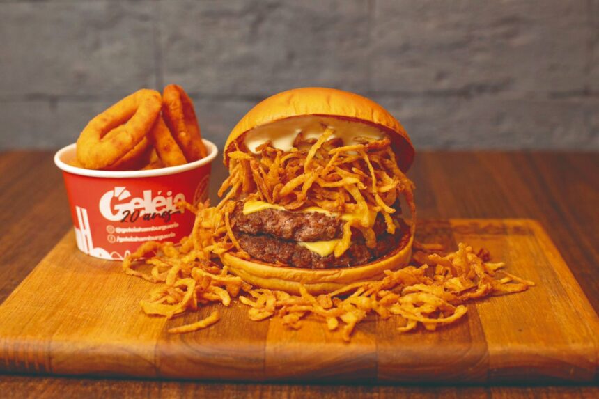 Na outra ponta, o Geléia Burger reforça a essência da casa com um perfil mais indulgente. São três smash burgers, bacon crocante e camadas generosas de queijo, resultando em uma experiência robusta, pensada para quem valoriza a potência da carne e o conforto do clássico bem executado.